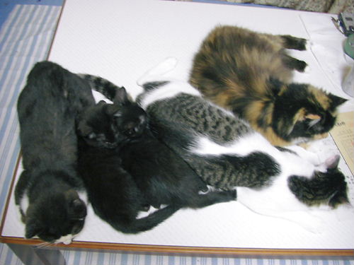 | × [PR]上記の広告は3ヶ月以上新規記事投稿のないブログに表示されています。新しい記事を書く事で広告が消えます。 昨日は雨の中、強行にも 息子の体育祭が行われました ![]() 中学校の体育祭に、親が見に行くのも 最初は「え~っ!?」とビックリしたものだけど うちの中学では、普通で。 保護者参加の競技もアリ。 ちゃんと、観覧席も設けてあるし。 名物の「全員でのソーラン」の踊り。 結構、見ごたえがあります。 それと「全員、ムカデ競争」。 一斉にドドーッと動くので 砂埃が半端じゃない ![]() ![]() でも、楽しい一日でした。 雨をのぞけば。 先日、以前にニャンコの里親さんになってくれた方から メアド変更のお知らせを頂きまして ニャンコの写真も送ってもらいました ![]() 2年前の5月、こんなにちっちゃかった子猫が こんなにデカクなってました。 ちょっと大きさが判りづらいかも知れないけれど 「でっかく 自由に育ってます」とのコメント通り 大事にされているのが判ります ![]() 本当にありがとうね ![]() 今度は「犬が・・・」と言ってたね・・・。 私に、そんなこと言ってもいいの~?(笑) 早速、お届けに参りますよ~?(笑) でも・・・。 寂しいお知らせを聞きました。 私が(コッソリと)預かりをさせて貰っている 「わんにゃんこの会」では 毎月、里親会なるものを開いてて 犬・猫の譲渡会の場があったんですが 今月、もう先週の日曜日に開催されたのを最後に 譲渡会を辞めるそうです ![]() 色々と、ご苦労もあったと思います。 色んなことを考えての決断だと思います。 今まで、本当にお疲れ様でした。 でも、犬・猫の譲渡は勿論これからも続きます。 保護される犬・猫がなくならない限りは・・・。 私も、自分に出来る範囲で これからもコッソリと預かりをしていきたいと思います。 寂しい思いをするわんにゃんこ達が 少しでも減ってくれることを祈って。 PR 毎日暑いです ![]() ![]() 我が家のニャンズたちも バテバテです ![]() ![]() そんな中、嬉しいお知らせ ![]() チビクロ兄弟がお試しに行きました ![]() 本当は真っ黒の 「 ひとし君(仮名) 」 にひと目惚れされて 引き取りたいと申し出て頂いたんですが ずっと二匹一緒にいた兄弟。 出来れば・・・・一緒に・・・どうですか?と お願いしてみたところ 「そりゃあ、離すのは可愛そうだ」と 快く二匹一緒に見て下さることに ![]() ![]() ひとし君(仮名)は、少し神経質なんで 場所が変わったり、環境が変わるだけで お腹がユルクなってしまう・・・ しげぞう(仮名)は、まだ少し鼻水と たまに目やにが出る・・・ そんなことを説明して もう少しウチで様子を見てから 引き渡すことにしましょうか?と提案したのですが 大事にします! すぐに掛かりつけの病院に連れて行って ちゃんと面倒みますから!と とても強く申し出て頂いて 先住ネコちゃんのことや かかりつけの病院やらもキチンと教えて下さって ![]() では、まずは様子見てあげて下さいね、と うちにあった飲み薬と目薬もお渡しして よーくお願いしました。 何かありましたら すぐに連絡下さいね、と。 今のところ 「 元気に走り回ってます 」 とのこと。 ほっ・・・ ![]() ![]() 早く新しいお家に慣れて 優しい里親さんの元で 幸せになって欲しいです ![]() ![]() ![]() ![]() 寝ているときは、天使だね ![]() ひとし君(仮名)。 優しい性格の男の子。 ちょっとヤンチャで、好奇心旺盛な しげぞう(仮名)。 大人しくして、猫かぶっていてね ![]() 幸せになるんだよぉぉぉ ![]()