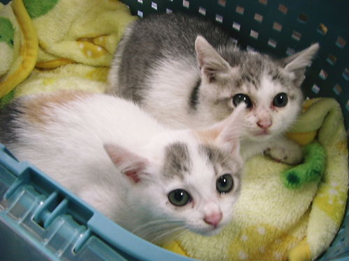 | × [PR]上記の広告は3ヶ月以上新規記事投稿のないブログに表示されています。新しい記事を書く事で広告が消えます。 先日、少し書いていましたが パステル兄妹の里親さんが決まりました ![]() なかなか、ジッとしてくれなくて 結局、うちに来た日の写真しか まともなのがなくて・・・ ![]() ![]() でも、この可愛い顔に一目惚れして下さり 下痢の治療も、目薬も、引き続き 「うちでやります」とまで申し出て下さって・・・。 暫くお試しで様子を見て貰ってたんですが 状態も良くなり とても元気に二匹が走り回る様子も知らせてくれて 安心して、お任せすることが出来ます ![]() 「綺麗なウンPが出た」と、写真も見せて貰いました ![]() 本当に、愛情がヒシヒシと感じられます。 ご家族も、みんなが可愛がって下さるようで これからは、沢山の愛情に包まれて 幸せになれると確信しています ![]() 本当に、ありがとうございました。 さて・・・残るはチビクロギャングたち・・・ 日に日に、パワーアップしてます ![]() 誰か・・・どなたか・・・ 縁起のいい「黒ネコ」はいかがですかぁ? ![]() PR この記事にコメントする